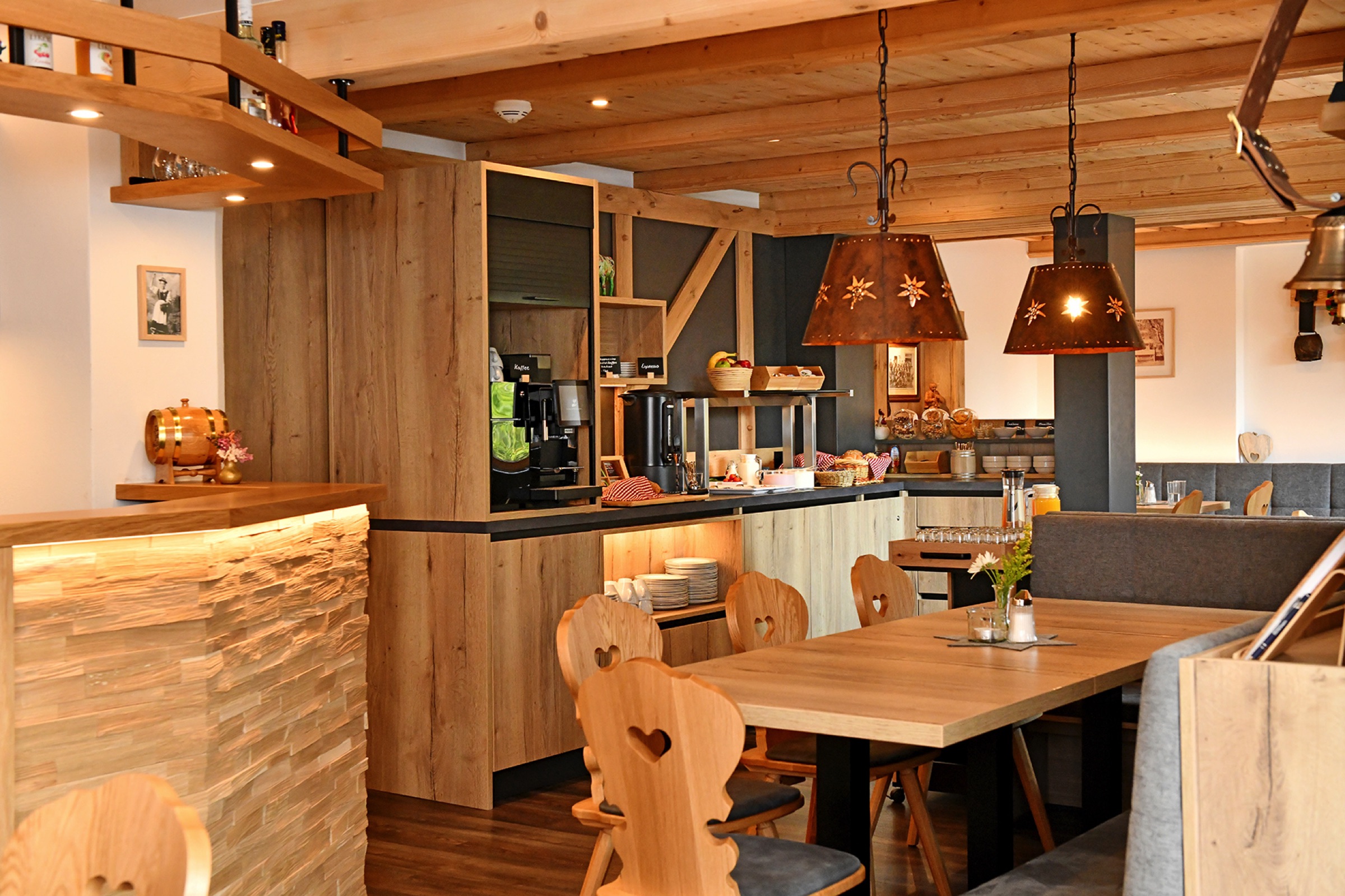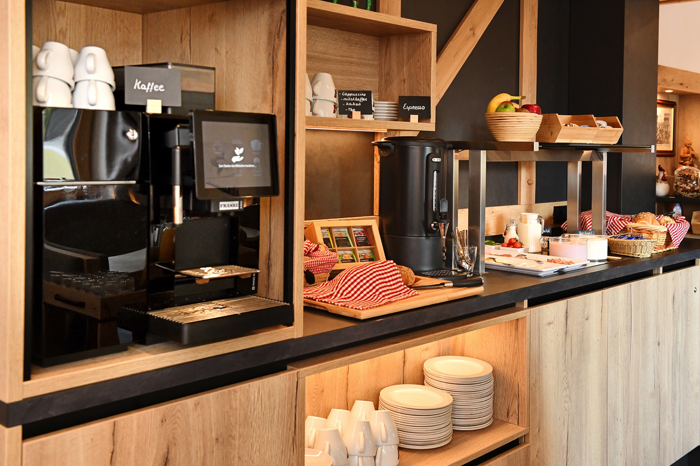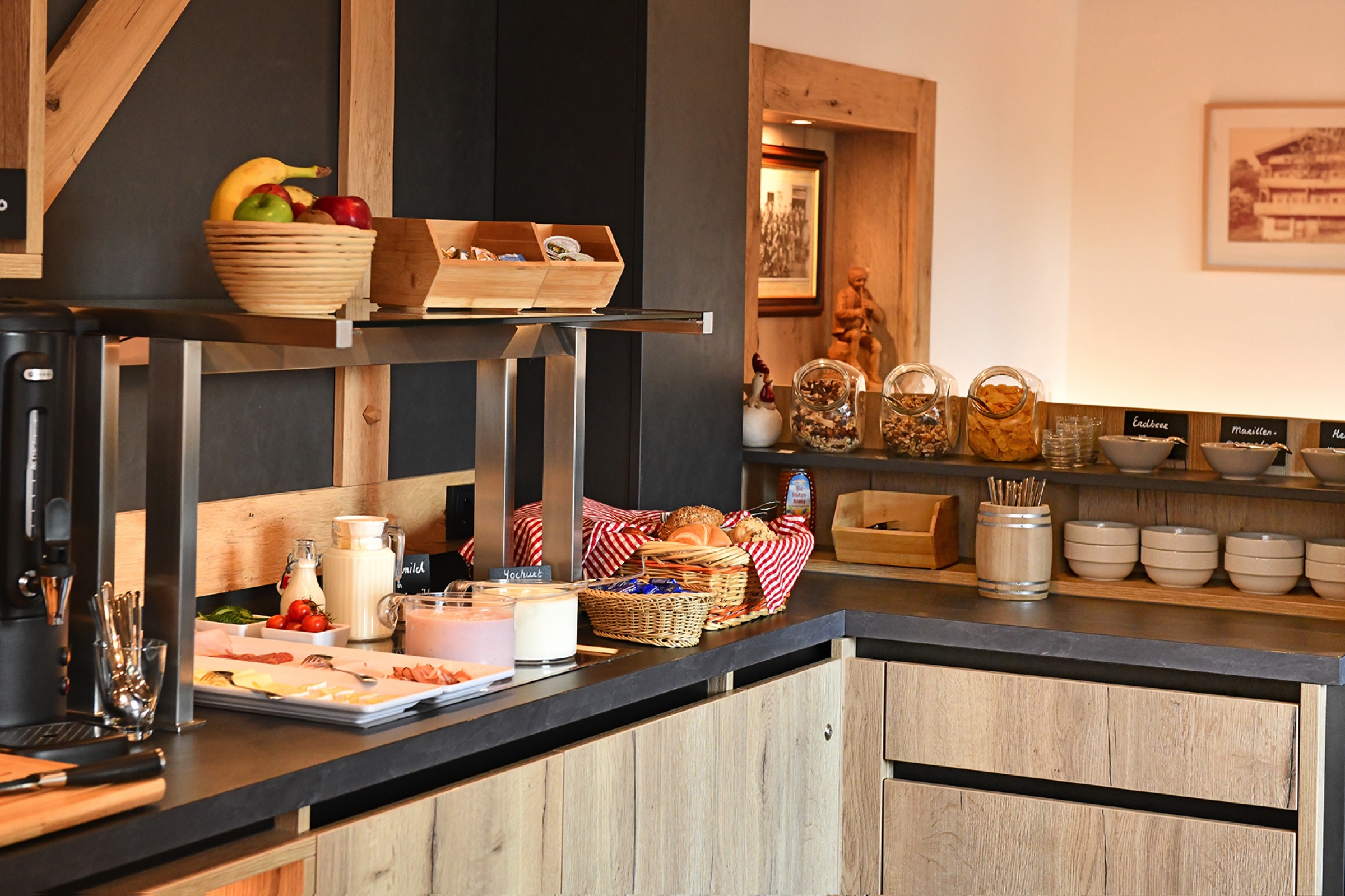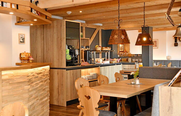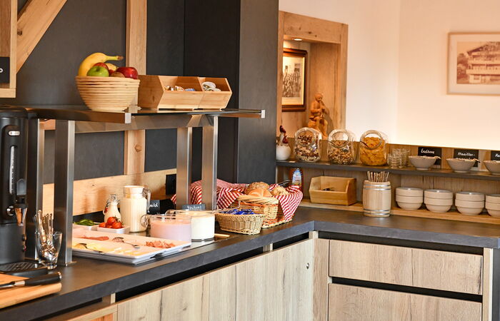 Starten Sie Ihren Tag mit einem liebevoll zubereiteten Frühstücksbuffet in unserer behaglichen Lounge.